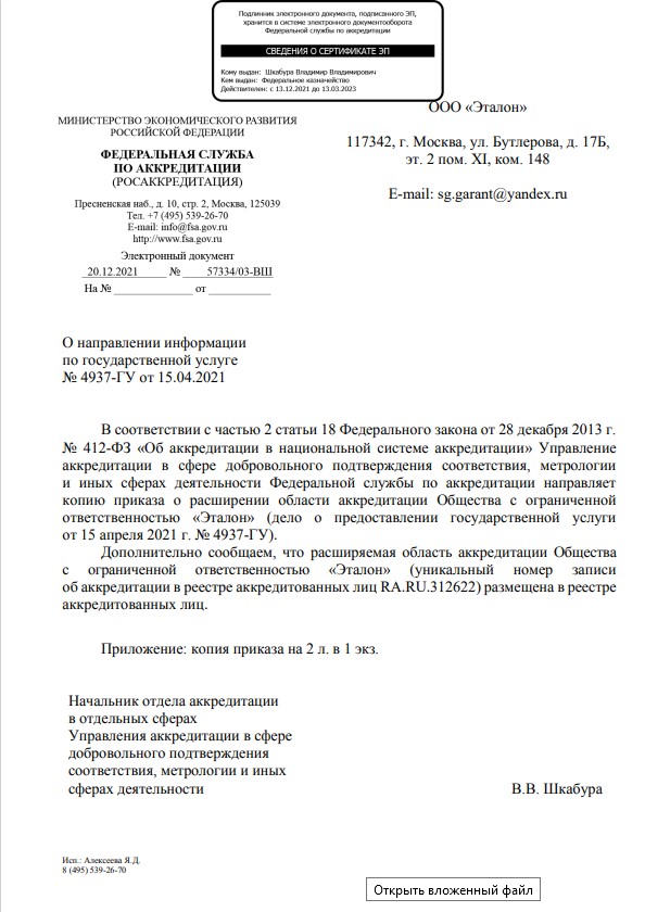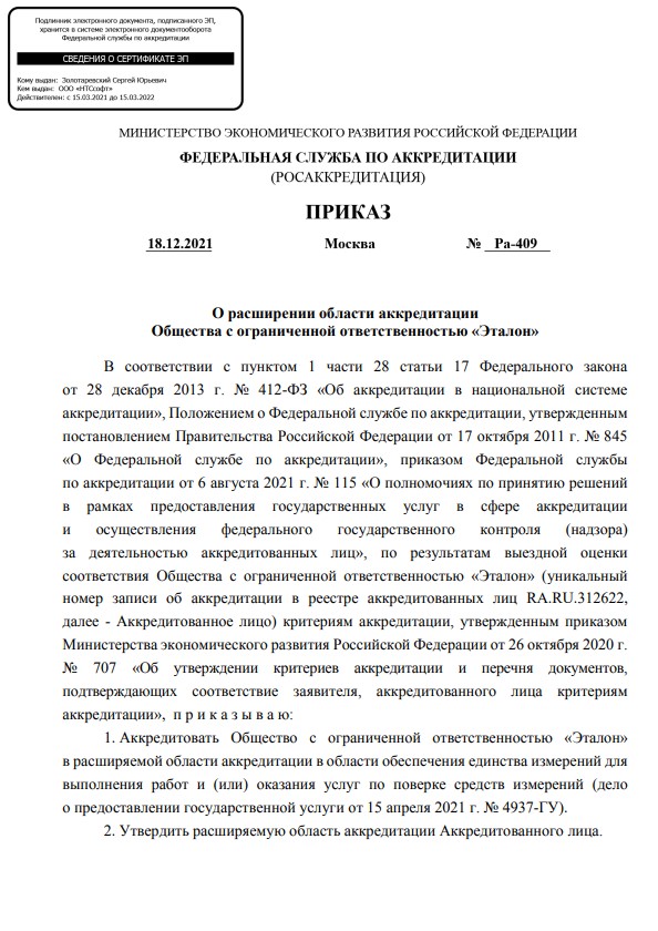 Аттестат служит доказательством того, что в метрологической лаборатории работает квалифицированный персонал, который был обучен согласно законодательным нормам и регулярно проходит повышение квалификации. Документ свидетельствует, что имеющиеся сотрудники в штате умело и эффективно работают с собственным оборудованием.